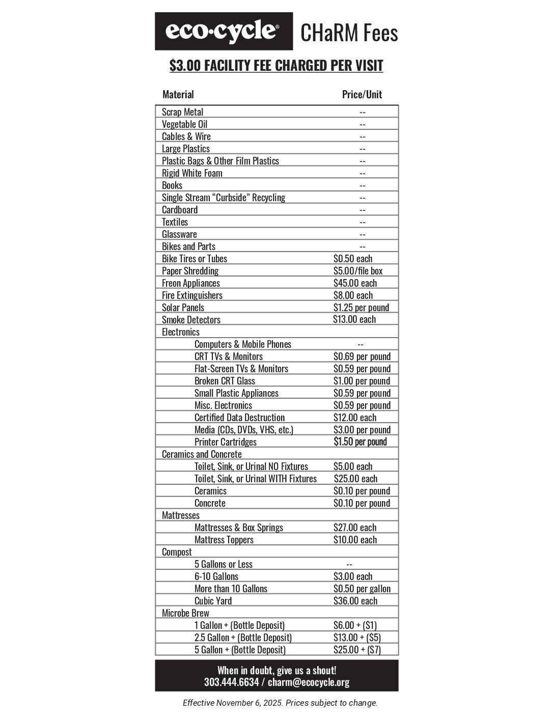The CHaRM facility is located along Recycle Row at 6400 Arapahoe Rd in Boulder, and is co-located with another great Zero Waste facility, Resource Central.